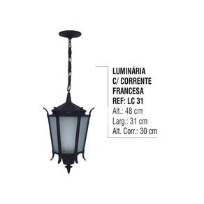 01 Luminária Externa Interna Francesa Com Corrente em Alumínio