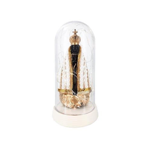 Luminária imagem nossa senhora aparecida padroeira do brasil com redoma led branco quente grande 19 cm perolada