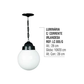 01 Luminária Irlandesa Com Corrente Externa Interna em Alumínio