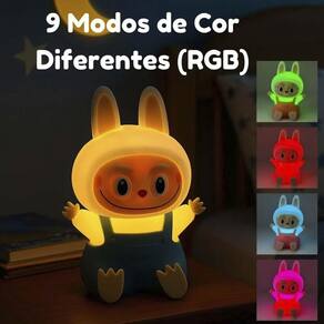 Luminária Abajur de Silicone Infantil RGB - Labubu Encante o ambiente com a Luminária de Silicone Labubu, perfeita para quartos infantis, salas ou como presente criativo. Com design fofo e corpo macio ao toque, ela oferece 9 opções de iluminação, incluindo cores fixas e modos RGB, além de 4 variações de cor de roupa para combinar com o seu estilo.