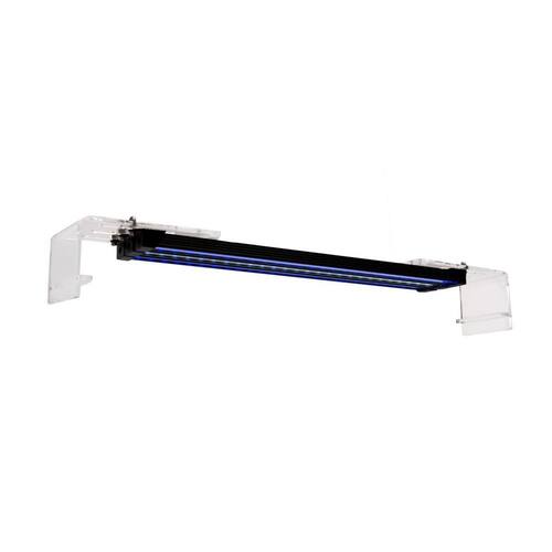 Conteúdo do kit: Suportes em acrílico reguláveis, com 05cm de altura para aquários sem tampa; Fonte bivolt; Cabos elétricos; Timer analógico 03 linhas compostas por calha dissipadora de alumínio, lentes transparentes, ponteiras e barra de leds smd implantados em alumínio com 50cm cada;