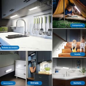 A luminária é compacta e portátil. Fácil de instalar, não precisa de ferramentas, basta colar a fita dupla face que vem na luminária e encaixar aonde precisar de iluminação.