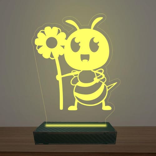 Luminária Led 3d Abelha Flor Abajur Luxo - Cor: Amarelo