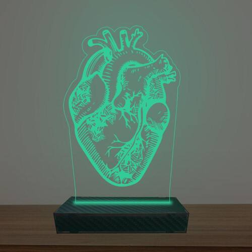 Luminária Led 3d Coração Anatomia Abajur Luxo - Cor: Verde