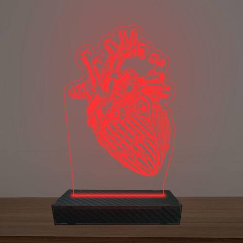 Luminária Led 3d Coração Mecânico Abajur Luxo - Cor: Vermelho