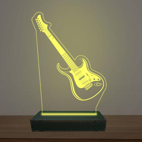 Luminária Led 3d Guitarra Abajur Luxo - Cor: Amarelo