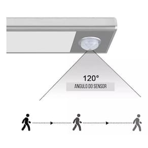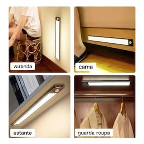 A luminária é excelente para colocar em Guarda-Roupas, Cômodas, Armário de Cozinha, Escadas e outros. Ela é recarregável e possui sensor de movimento. Pode ser utilizada sempre ligada, desligada ou somente quando detectar o movimento. CARACTERÍSTICAS Bateria: 1800mA Potência: 3W Alimentação: 5V Cor Da Luz: 4000k Branco Neutro Ângulo: 120º Distância Máx De Sensibilidade: Aproximadamente 3m Tempo de Delay: 18s Material: Plástico e Alumínio Peso Aproximado: 230g Dimensões: 40 x 4 x 1cm Instalação: Fita Dupla Face com suporte para fácil remoção. O suporte fica preso ao móvel e você pode remover a luminária facilmente para recarregar ou utiliza-la em outro local. ACOMPANHA 1x Luminária com Sensor 40cm 1x Cabo para Carregamento: USB 2x Suportes de Encaixe Com Dupla Face Adequado para quartos, guarda roupas, estantes, corredores, escadas e outros espaços que necessitem de iluminação. A luz se apaga após 18 segundos após não capitar mais movimento no sensor. Marca: Kadê
