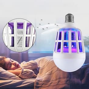 - Construída com chips de LED que emitem luz azul de raios ultravioleta atraente para mosquitos, eliminados por um choque elétrico. - Área de cobertura ampla e eficaz. - Design 2 em 1, permitindo uso como iluminação ou exterminador de insetos. - Mais segura e prática em comparação com outros métodos de repelência a insetos. - Fácil de operar, adequada para uso interno ou externo em qualquer soquete padrão de lâmpada, ideal para varandas e jardins.