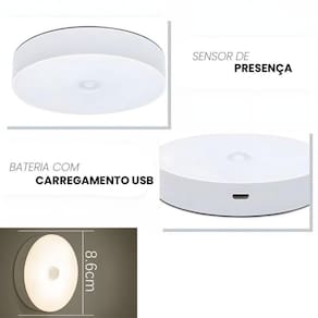 Sensor inteligente: Acende automaticamente ao detectar movimentos no escuro.Sistema recarregável: Elimina o uso de pilhas com carregamento via USB.Instalação prática: Fixação com imãs, ideal para diferentes superfícies.Compacta e moderna: Design que se adapta a qualquer ambiente interno.