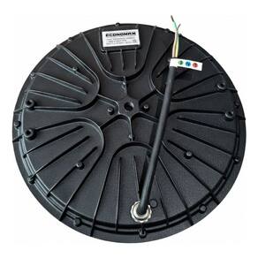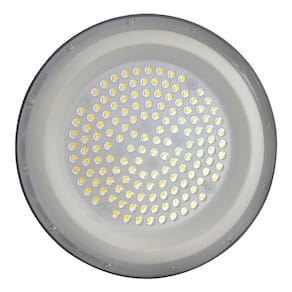 Especificações Técnicas e Comerciais: Potência: 100W. Fluxo Luminoso: 10000lm. Temperatura de Cor: 6500K (Branco Frio). Dimensões: Ø236mm x 80mm. Peso: 680g.