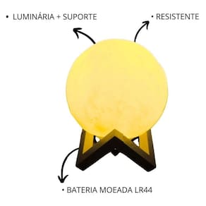 Projetada com tecnologia de impressão 3D, reproduz com fidelidade os detalhes da superfície lunar, criando um efeito visual cativante e elegante. A luz amarela proporciona uma iluminação quente e relaxante, ideal para uso em quartos, salas, escritórios ou espaços de meditação.
