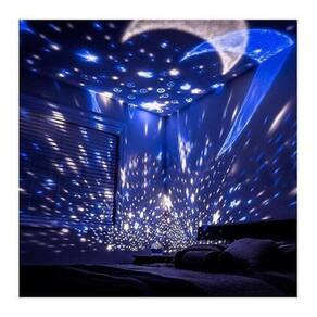 Projeta na capa globo ou no teto e paredes a imagem das estrelas, lua e pontos na cor branco, ou pode trocar a cor para verde, ou azul, ou vermelho. Ou ainda em duas cores a sua escolha, pressionando o botão b.