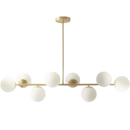 Luminária Lustre 110cm Jabuticaba 8 Globos Vidro Dourada Pendente Teto Gimpo KJDD-E-547-GOLD-Milky-8