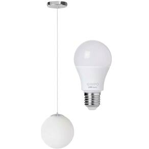 Luminária Lustre Pendente 215cm Jabuticaba Globo Vidro 15cm Teto Gimpo PJ15 + Lâmpada 12W