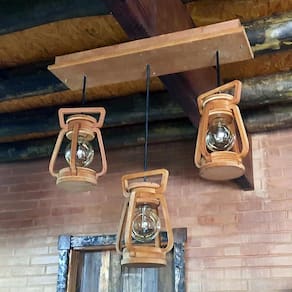 Luminária lampião rustico, fabricado em mdf e pintado a mão. Envernizado deixando um acabamento envelhecido perfeito.
