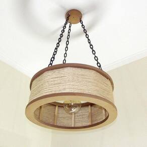 Luminária lustre pendente rústico retro madeira sisal 35cm Lindo para decorar em cima de uma mesa de jantar, hall de entrada área de churrasco, ambientes como áreas de garagem, garagens com bar, chácara, decorar festas, lanchonetes, casa de campo, pousadas entre outras. Deixando seu ambiente ainda mais agradável. Garantimos a qualidade de nossos produtos Nossos produtos são de fabricação própria cortadas com cnc router que nos traz medidas e ângulos perfeitos nosso acabamento é feito à mão, são envernizados com verniz de alta resistência e durabilidade dando assim um ótimo acabamento. Características da luminária: - dimensões: - diâmetro 35 cm - peso do produto 2 kg - espessura 17 cm - bocais 1 - material: mdf medium density fiberboard - mdf ecologicamente correto com certificado fsc de alta qualidade - cor: mogno - nível de instalação: fácil - garantia de 12 meses contra defeitos de fabricação Conteúdo da embalagem: - ganchos sim- soquetes sim- base para teto sim - corda sim- fios sim- lâmpadas não Os objetos decorativos não acompanham o produtoA voltagem depende da lâmpada 100/220 vAs lâmpadas não acompanha o produto Marca: Eco.Start