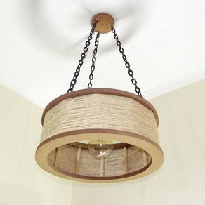 Luminária lustre pendente rústico retro madeira sisal 35cm Lindo para decorar em cima de uma mesa de jantar, hall de entrada área de churrasco, ambientes como áreas de garagem, garagens com bar, chácara, decorar festas, lanchonetes, casa de campo, pousadas entre outras. Deixando seu ambiente ainda mais agradável. Garantimos a qualidade de nossos produtos Nossos produtos são de fabricação própria cortadas com cnc router que nos traz medidas e ângulos perfeitos nosso acabamento é feito à mão, são envernizados com verniz de alta resistência e durabilidade dando assim um ótimo acabamento. Características da luminária: - dimensões: - diâmetro 35 cm - peso do produto 2 kg - espessura 17 cm - bocais 1 - material: mdf medium density fiberboard - mdf ecologicamente correto com certificado fsc de alta qualidade - cor: mogno - nível de instalação: fácil - de 12 meses contra defeitos de fabricação Conteúdo da embalagem: - ganchos sim - soquetes sim - base para teto sim - corda sim - fios sim - lâmpadas não Os objetos decorativos não acompanham o produto A voltagem depende da lâmpada 100/220 v As lâmpadas não acompanha o produto Marca: Não Informado