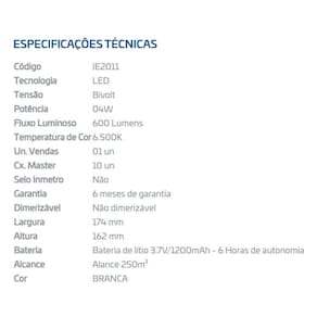 Dois faróis potentes: Proporcionam uma iluminação ampla e eficiente, garantindo boa visibilidade em caso de falta de energia.Bivolt: Funciona em tensões de 110V e 220V, adaptando-se a diferentes instalações.Bateria interna: Permite que a luminária funcione por várias horas após a interrupção da energia elétrica, garantindo segurança e tranquilidade.Fácil instalação: Pode ser fixada em paredes ou tetos, de forma rápida e simples.Design moderno: Se adapta a diversos ambientes, complementando a decoração.Alta durabilidade: Construída com materiais de alta qualidade, garantindo longa vida útil.