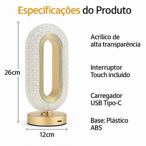 Luminária de Mesa Abajur Decorativo Efeito Cristal Dourado Touch 3 Tons Bateria Recarregável Modelo: Modelo 2 Luminária de Mesa Modelo Cristal Touch Recarregável com 3 Tons de Luz - Elegância e Funcionalidade para Qualquer Ambiente Transforme qualquer ambiente com um toque de sofisticação e charme com a Luminária de Mesa Modelo Cristal. Com design moderno inspirado em cristais facetados, essa luminária é perfeita para compor mesas de cabeceira, escritórios, salas ou até mesmo para dar um toque especial em eventos e decorações elegantes. Seu sistema de acionamento touch permite ligar, desligar e alternar entre 3 tons de iluminação com apenas um toque: luz branca, luz amarela e luz neutra - adaptando-se perfeitamente ao clima que você deseja criar. Além disso, é recarregável via USB, ou seja, dispensa o uso de fios, garantindo praticidade e mobilidade. Destaques do Produto