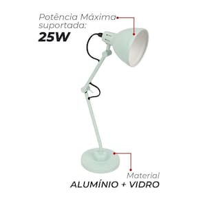 Características Adicionais: Base: E27. Índice de Proteção: IP20. Índice de proteção: IP20 (Uso interno). Cabo de 1,5m com botão liga e desliga. Tensão Nominal (100V - 240V) - dependerá do modelo de lâmpada utilizada.