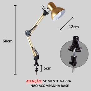Luminária de Mesa Bancada Pixar Articulável Abajur de Mesa com Garra Escritório Bivolt Cor: Cobre Voltagem: 110V/220V Luminária Pixar Escritório Abajur de Mesa Articulada com garra presilha 110V 220V Características do produto: Design articulado Acabamento em metal de fácil acesso Ajuste de ângulo Benefícios e uso: Iluminação direcionável Ideal para estudos e trabalho Perfeita para decoração moderna Economia de energia Durabilidade e resistência Criação de um ambiente aconchegante Complemento decorativo elegante Cuidados: limpar com pano seco e não utilizar produtos abrasivos Informações Técnicas Cor Vermelha - Prata - Preta - Branca - Dourada - Cobre Dimensões do produto 16cm de diâmetro - 60cm altura Tipo de Embalagem Individual Tipo de Soquete E27 Quantidade de Lâmpadas Necessárias 1 Lâmpadas Apropriadas Led Potência Máxima por Lâmpada 20W Acompanha Lâmpada Não Possui LED Integrado Não Material Polipropileno e Aço Necessita Montagem Não Uso Mesa Tensão Bivolt Marca: Não Informado