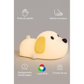 Luminária Mesa Cachorro Recarregável Silicone Touch Led Luminária Infantil de Silicone - Formato Cachorrinho Transforme o quarto das crianças em um ambiente aconchegante e divertido com esta charmosa luminária em formato de cachorrinho. Fabricada em silicone macio, ela é segura, resistente e perfeita para momentos de brincadeira. - pode ser batida sem quebrar - Aperte e brinque - textura agradável e maleável - Desligamento automático após 45 minutos - Luzes RGB para variar as cores - 3 níveis de intensidade de luz Ideal para ser Utilizado como luz noturna, proporcionando conforto e tranquilidade na hora de dormir. Funciona com luz LED de baixo consumo, garantindo economia e longa durabilidade. - Tamanho compacto - fácil de transportar e posicionar em qualquer espaço. - Perfeita para presentear crianças e amantes de decoração criativa O produto é novo Sim, todos os produtos são novos. Caso o produto não supra minha necessidade posso devolver ou trocar O produto tem Sim, todos os produtos têm . Se ainda houver alguma dúvida estamos a disposição para responder de segunda-feira a sexta-feira das 08:00 às 17:30. Marca: Não Informado