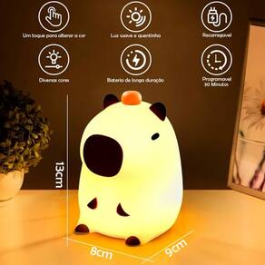 Feita de silicone macio e lavável, livre de BPA, esta luminária é segura para manuseio, permitindo que os pequenos a apertem sem preocupações.