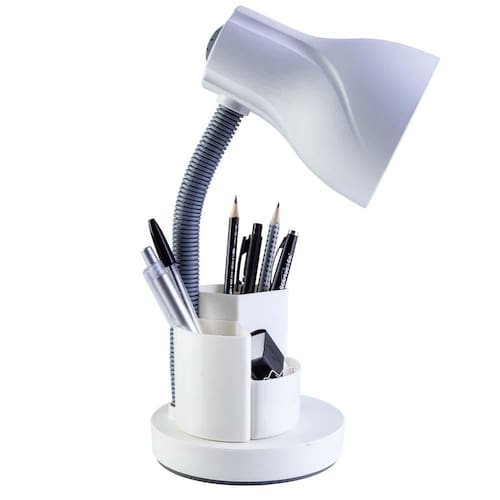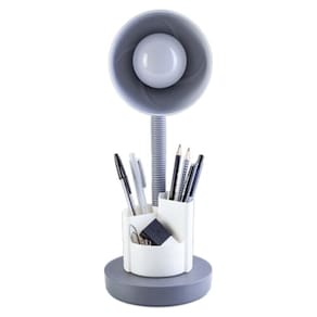 O destaque dessa luminária está no seu porta-lápis/caneta acoplado, que garante praticidade e organização para seus materiais de escrita, como lápis, canetas, borracha e clips. Além disso, o porta-canetas é giratório e permite que você o monte da maneira que preferir, proporcionando ainda mais versatilidade.