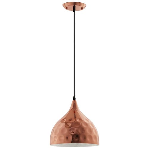Modway Dimple es una luminaria colgante de techo contemporánea con pantalla tipo campana de 28 cm (11 pulgadas). Esta lámpara crea una iluminación personalizada ideal para cocina, lavandería o comedor. Su diseño martillado presenta pequeñas hendiduras circulares que le dan una textura única, ofreciendo un giro moderno a un diseño clásico. La pantalla metálica color oro rosado cuelga de un cable trenzado ajustable de dos núcleos y tiene un interior blanco contrastante para un estilo sofisticado en cualquier hogar o departamento. Requiere una bombilla E26 de 60W (no incluida). Certificada UL y aprobada. Dimensiones: 28 cm de largo x 28 cm de ancho x 199 cm de alto; longitud del cable: 199 cm.