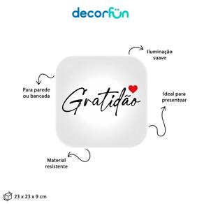 Não perca a oportunidade de elevar o estilo e a energia do seu espaço com a Luminária Box Gratidão. Deixe que sua luz e mensagens transformadoras inspirem você e sua família. Adicione esta peça única à sua compra e descubra como mudanças simples podem gerar grandes resultados na sua vida.