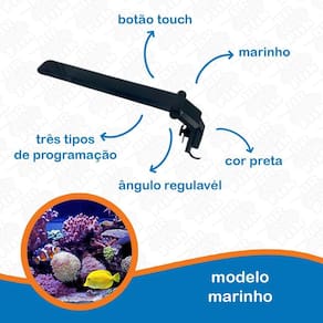 - essa luminária de extrema qualidade vai trazer elegância e sofisticação ao seu aquário - possui sistema touch sensível ao toque - são 24 leds no total, sendo 16 brancos e 8 azuis 0,5w cada , totalizando 12w - ideal para aquário marinho