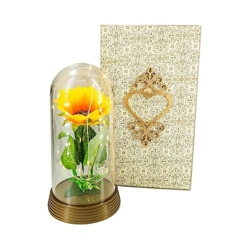 Produto exclusivo amor lindo boutique, fabricação própria, de alta qualidade. Luminária a bela e a fera com caixa de madeira edição especial. Impressione o seu amor com este lindo presente. Caixa de madeira, com tecido e aplique de coração, pintada a mão. Luminária inspirada no filme a bela e a fera e o pequeno príncipe, com pequenas luzes de fada. O girassol é eterno, eternize seu amor Detalhes: Luminária possui 19 cm de altura por 10 cm de diâmetro. Caixa possui 22 cm de comprimento, 12 cm de largura por 11 cm de altura. Caixa de madeira pintada a mão de dourado, tampa revestida com tecido e aplique com coração. Cúpula de acrílico. Base de plástico. Flor artificial. Micro luzes de leds / luzes de fadas que, funcionam com apenas 2 baterias cr 2032 já inclusas . Funciona com pilhas ou baterias, já inclusas. Este presente é único, símbolo de amor e paixão. Características: 1. Produto feito à mão. 2. A luminária e a caixa são funcionais e além disso podem ser usadas para compor a decoração da sua casa, do seu quarto, da sua empresa ou da sua festa. 3. É o presente perfeito para dia dos namorados, aniversário, natal, dias das mulheres, dia das mães e dia das crianças, perfeito tanto para crianças como para adultos, ou qualquer ocasião que mereça um presente único e precioso. 4. Pode ser para decorar festas, fica simplesmente incrível e todos ficam encantados. Este presente é único, símbolo de amor e paixão. Marca: Não Informado