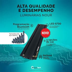 As Luminárias OCEANTECH NOUR usam LEDS 5730 de alta qualidade e alto desempenho, o corpo é construído em alumínio extremamente robusto para uma ótima dissipação do calor sem a necessidade de ventoinhas, elas com aplicativo Bluetooth podendo programar amanhecer e entardecer e 8 períodos de tempo diferente.
