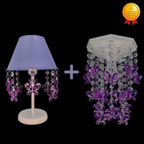 Kit de 1 abajur + 1 lustre infantil borboletas lilás