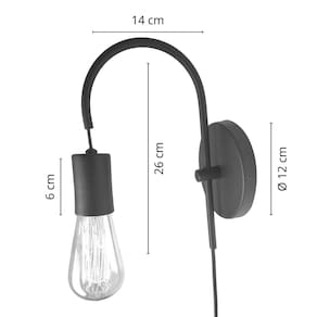 Modelo: arandela Cor es : preto Material: alumínio Canopla de teto: alumínio 12cm Luminária: 1 soquete e27 Número de lâmpadas: 1 lâmpadas não inclusas Voltagem: 127v/220v Medida: 26 x 14 cm Peso líquido: 0,400 kg