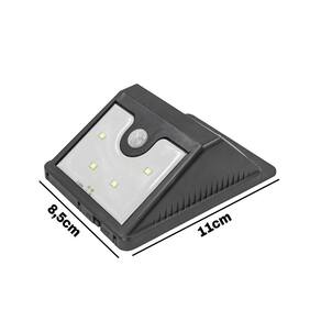 Modelo: Luminária Parede Solar 4 Leds Material: ABS, Componentes Elétricos Fonte de Energia: Solar Potência de Iluminação: 3 watts Proteção em Nível: IP65 Distância de Detecção: 7 m Autonomia de Iluminação: Aproximadamente 12 horas Produto Resistente à Água Tipo de Instalação: Fixado Na Parede Interruptor: Botão ON/OFF Sensor de Movimento Ângulo: 120º Dimensões Aprox.: 11cm Comprimento X 8,5cm Largura X 4,5cm Profundidade Peso Aprox.: 130g
