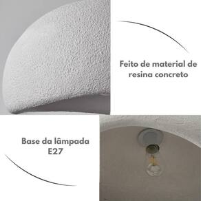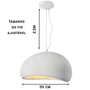 Cor: branco concreto Largura: 50cm Materiais: metal e resina Tipo de encaixe da lâmpada: e27 não inclusa Peso: 5,70kg Comprimento do cabo: 2.5metro Marca: Não Informado