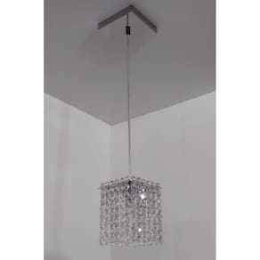 Material: Inox Espelhado Base 12 x 12cm Medidas: Cristal Quadrado 11x 11cm Cabo Regulável na Instalação 1,5m Cristal : Castanha 14mm Transparente Lâmpadas: 1 Lâmpadas Modelo G9 Obs. Lâmpadas não inclusa no produto Compatível com Lâmpadas de Led G9 Voltagem: Bivolt Peso: 1 Kg : 90 dias contra defeito de fabricação Ean: 7898664320656