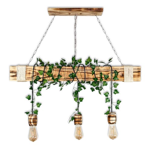 - Fabricada em Madeira Maciça Legalizada e Sustentável; - Acabamento estilo Safari e detalhes em Corda de Sisal; - Altura ajustável, conforme arranjo dos Pendentes; - Acompanha 3 Pendentes com 1,5 Metro cada, a serem dispostos conforme sua preferência; - Acompanha 4 metros de Trepadeira Hera Artificial para decoração do Pendente; - Comprimento de 95cm e largura de 10cm; - ATENÇÃO O peso do produto pode variar entre 6Kg e 8Kg; - Soquetes Padrões E27, com acabamento em Formato de Barril; - Tensão Bivolt 110/220V ; - Acompanha Kit de Fixação.