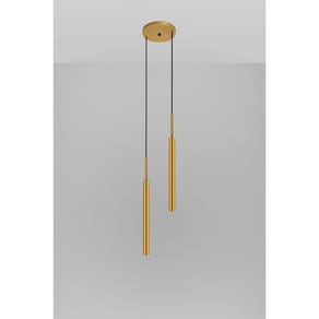 Tudo para iluminar seu ambiente com muito charme Perfeito para todos os ambientes Modelo: pendente Cor es : dourado Material: alumínio Canopla de teto: alumínio 15cm Cabo de alimentação regulável: 1,5m Luminária: 2 soquete g9 Número de lâmpadas: 2 lâmpadas não inclusas Voltagem: 127v/220v Medida: 43 x 2,5 cm Peso líquido: 0,5 kg Conteúdo da embalagem: 1 luminária de teto