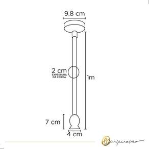 Tamanho do Cabo: 1m Diâmetro da Base: 9,8cm Tipo de Soquete: E-27 Voltagem: Bivolt Uso: Interno Material: Corda Cor: Palha Para maior vida útil e desempenho é recomendado utilizar lâmpada LED Este produto NÃO acompanha lâmpada. Marca: Cinderella Decor Ean: 7891000272855