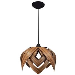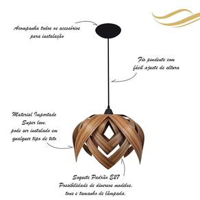 Luminária Pendente Madeira Sala Cozinha Flor De Lótus Cor Pau Ferro