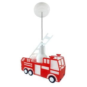 Luminária/lustre Pendente Caminhão de Bombeiro Infantil - Quarto Menino Menina Criança BebêCores:Vermelho e DetalhesDimensões:Comprimento: 32 cmLargura: 11 cmAltura: Aprox. 20 cm caminhão + Aprox. 60 cm fio/cabo ajustável Materiais:Caminhão: AcrílicoSoquete e-27: PorcelanaLâmpada não inclusa - Utilizar LED ou eletrônica de até 60 watts equivalentes