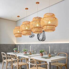 luminária pendente led p/ teto retrô bambu tecelagem bivolt