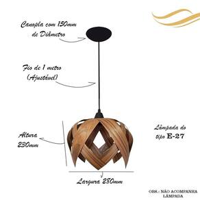 Especificações técnicas: Dimensões do produto cxlxa: 28 x 28 x 23cm; Peso do produto: 200g Cabo: PP preto, 1 metro ajustável ; Soquete: tipo e-27; Lâmpada: aceita diversos tipos eletrônica ou LED - obs.: não acompanha lâmpada; Voltagem: 110v / 220v bivolt ;