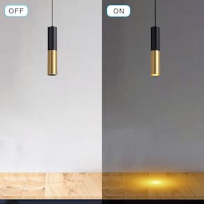 ? Luminária pendente moderna ? Ilha da cozinha Luzes penduradas de metal ? Estilo minimalista Cordão ajustável Especificações Forma: Cilíndrica Cor: Preto fosco + dourado Material do corpo: Metal Tipo de lâmpada: GU10 (incluído) Estilo: Moderno/Industrial Tensão: 110V-250V cor da iluminação: 2700k branco quente A embalagem inclui: 1 luminária pendente (lâmpada incluída) 3 ganchos pendentes XSwag 1 x manual de instruções (idioma português não garantido). Sugestão A. Todos os fios estão conectados. Ao desembalar, tenha cuidado para não puxar com fios, pois pode ocorrer uma conexão ruim. B. Não conecte a eletricidade até que sua luminária esteja totalmente montada. C. Sempre desligue e desconecte a luminária e deixe esfriar antes de substituir a lâmpada. D. Não toque na lâmpada quando a luminária estiver ligada ou olhe diretamente para a lâmpada acesa. - ?Ampla aplicação? As mini luminárias pendentes podem ser usadas no teto. As luzes suspensas em ouro preto fosco são L-11,8 cm e W-6 cm são perfeitas para ilha de cozinha, sala de jantar, quarto, banheiro, bar, sobretinta, corredores, sala de estar. - ?Alto desempenho?A iluminação pendente de cozinha sobre a ilha é composta de tubos de alumínio e metal. E o abajur dourado com tinta galvanizada el durável na superfície, estilo minimalista industrial moderno. Você pode ajustar livremente o comprimento do cabo de 150 cm para se adaptar a diferentes ambientes. - ?TIPO DE ILUMINAÇÃO?A luminária pendente de teto dourada moderna está incluída sem necessidade de compra extra. Funciona com uma lâmpada LED branca quente 6W 2700K GU10 (não regulável). Pode suportar a substituição de lâmpadas GU10 de maior brilho (máx. 36w). - ?FÁCIL DE INSTALAR? Incluímos todas as ferragens de montagem e temos um guia detalhado em nossa lista. Fácil instalação seguindo o guia. Existem parafusos para fixar os fios no elo da placa de teto de metal, permitindo que você personalize o comprimento desejado das luminárias para se adaptar a diferentes decorações de casa. - ?Compre com confiança?O cabo rígido inclui 1 * luzes pendentes douradas e lâmpada GU10, se você receber a luz e encontrar alguma peça ausente ou dano, resolveremos o mais rápido possível. Todos os clientes estão satisfeitos com nosso produto e serviço.