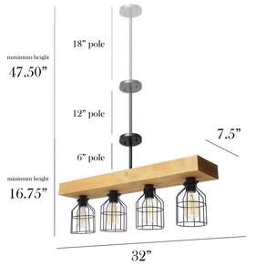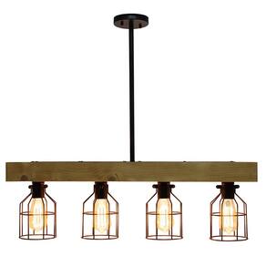 Elegant Designs CH1001-LWD 4 Light Rustic Farmhouse Industrial Wire Cage Pendant Island Light Lustre, madeira clara