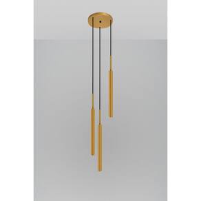 Tudo para iluminar seu ambiente com muito charme Perfeito para todos os ambientes Modelo: pendente Cor es : dourado Material: alumínio Canopla de teto: alumínio 18cm Cabo de alimentação regulável: 1,5m Luminária: 3 soquete g9 Número de lâmpadas: 3 lâmpadas não inclusas Voltagem: 127v/220v Medida: 43 x 2,5 cm Peso líquido: 0,75 kg Conteúdo da embalagem: 1 luminária de teto