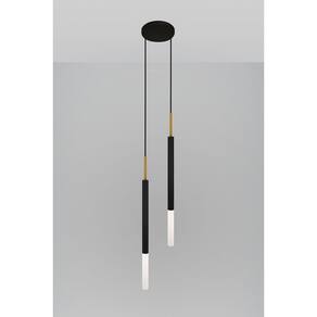 Tudo para iluminar seu ambiente com muito charme Perfeito para todos os ambientes Modelo: pendente Cor es : preto/dourado Material: alumínio com policarbonato Canopla de teto: alumínio 15cm Cabo de alimentação regulável: 1,5m Luminária: 2 soquete g9 Número de lâmpadas: 2 lâmpadas não inclusas Voltagem: 127v/220v Medida: 53 x 2,5 cm Peso líquido: 0,6 kg Conteúdo da embalagem: 1 luminária de teto