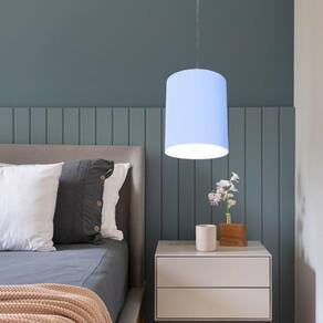 Luminária Pendente Vivare Free Lux Md-4103 Cúpula Em Tecido Azul-bebê Da Canopla Canopla Branca E Fio Cristal